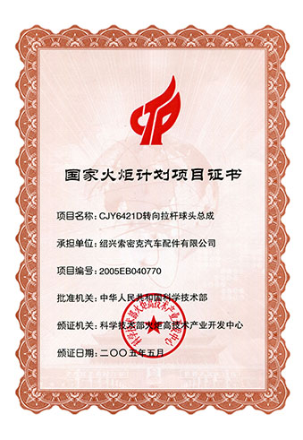 公司已先后通過IATF16949質量管理體系認證、ISO/14001環境管理體系認證和OHSAS18001職業健康安全管理體系認證。是“國家高新技術企業”“行業龍頭企業”和“全國百家優秀汽車零部件供應商”。